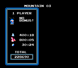 Depth: 7/10 In Ice Climber, there are a total of 32 mountains for you to conquer, and those mountains are not easy for you to beat, so if you want to conquer all the mountains the game has to offer, then Ice Climbers will keep you busy for a long time. While there are games with more levels to beat than there are in this game, I say there's more than enough content in this game for me to give Ice Climber's depth a 7.